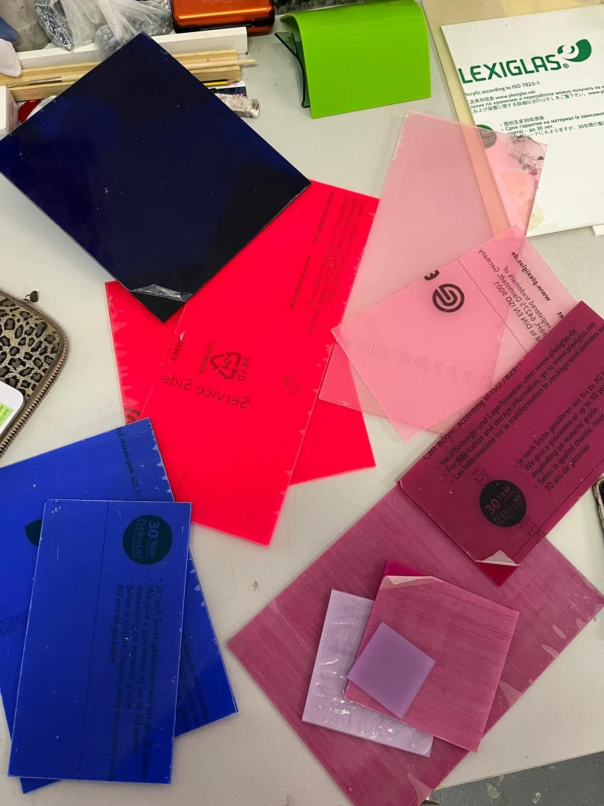 Le opere sono piccoli origami in plexiglass fuso e rimodellato, entità tridimensionali e leggere che ridisegnano lo spazio circostante, creando un movimento fluido e continuo.